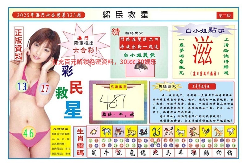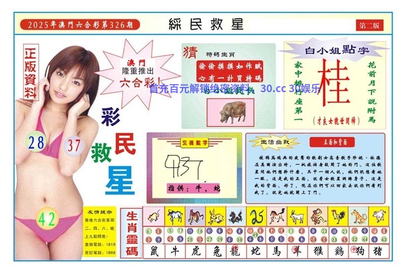 328期:密门仙机/心水特码信/黄大仙天书/波色生肖诗/生肖歇后语