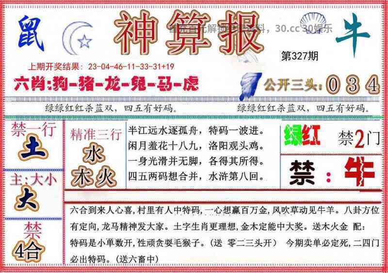 328期:电脑推算/正版解一肖输精光/玄机解一肖/六合皇五字